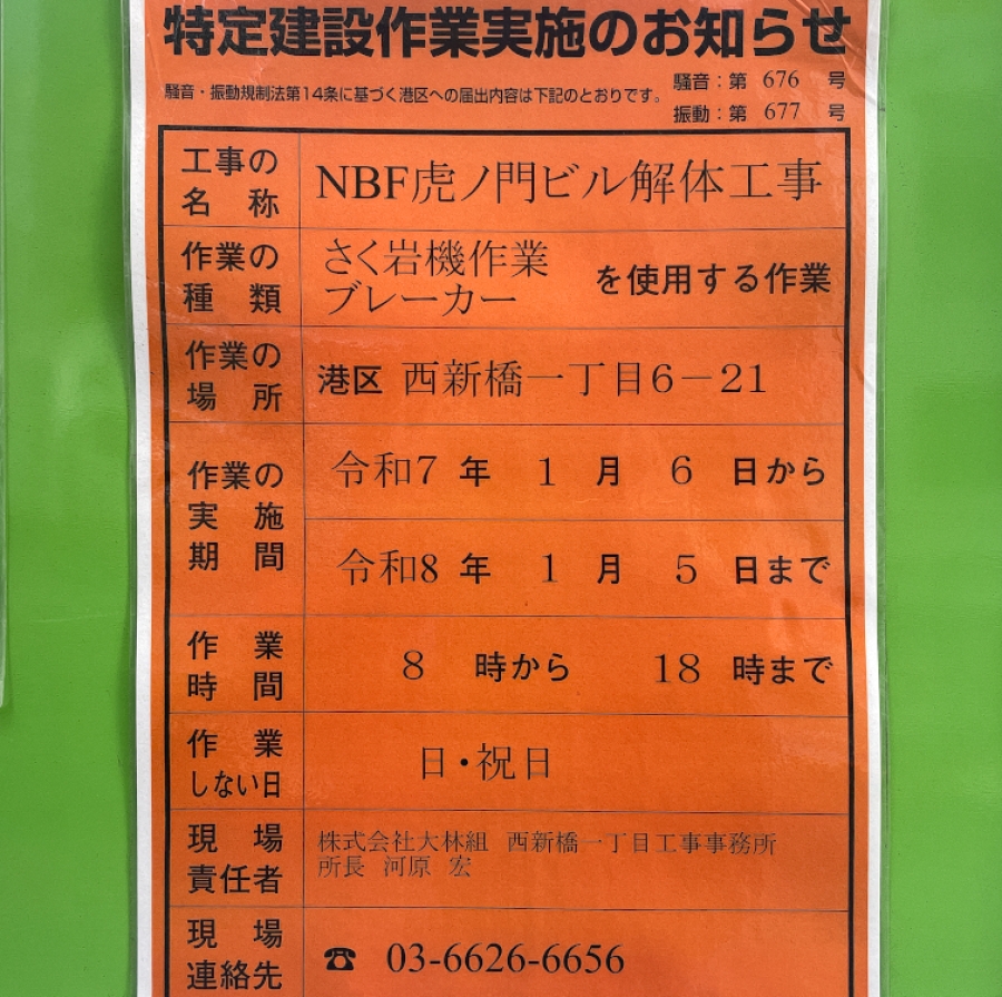 ※解体予定工期:2025年2月20日~2026年5月15日(大林組東京本店・阿野組)